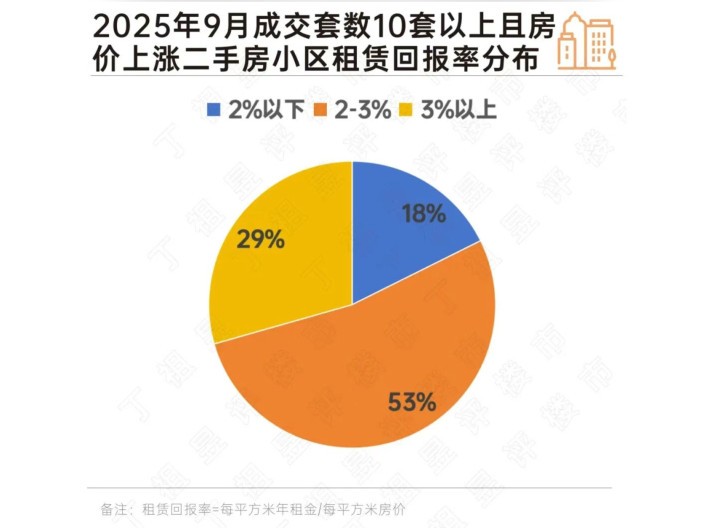 一般而言,租赁回报率达到2%是止跌的最重要指标,9月成交套数10套以上且房价上涨的二手房小区中有82%小区“止跌”。