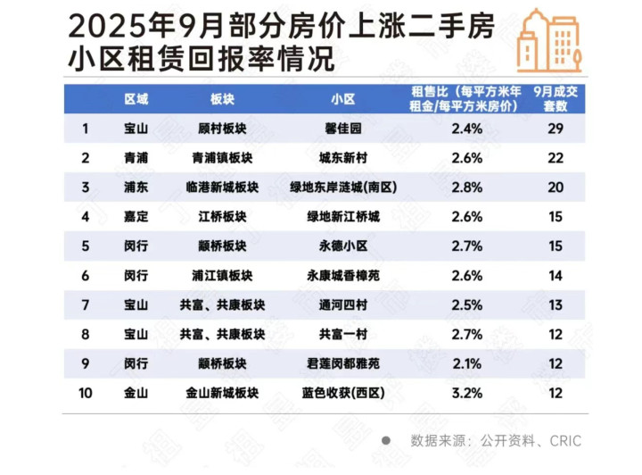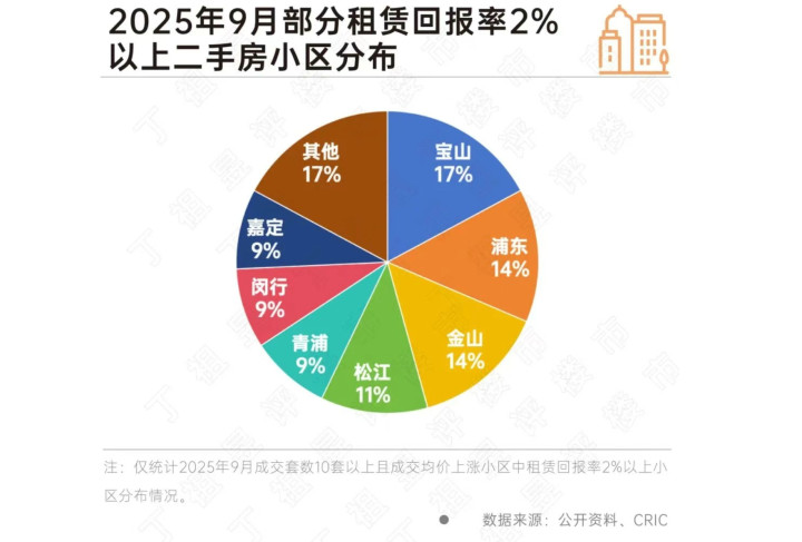 分区域来看,租赁回报率2%以上小区同样大多在城市近远郊片区,如宝山、金山、松江等。这也进一步印证了刚需是推动房价止跌的核心力量。